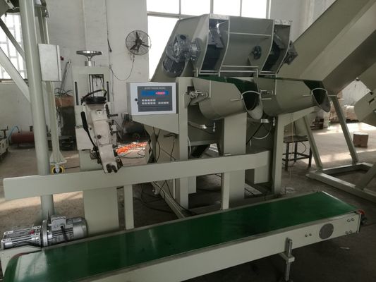 Automatic weighing-->Manual discharge to fill into bags-->Automatic belt conveyor transportation-->Bag sewed or sealed-->Next Round